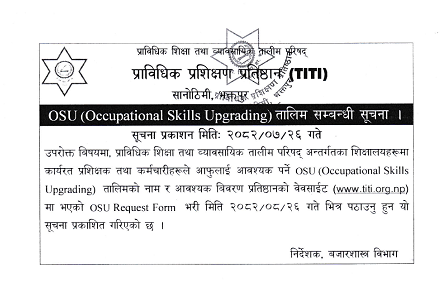 Occupational Skills Upgrading तालिमको लागि फाराम भर्न यहाँ क्लिक गर्नुहोस्।